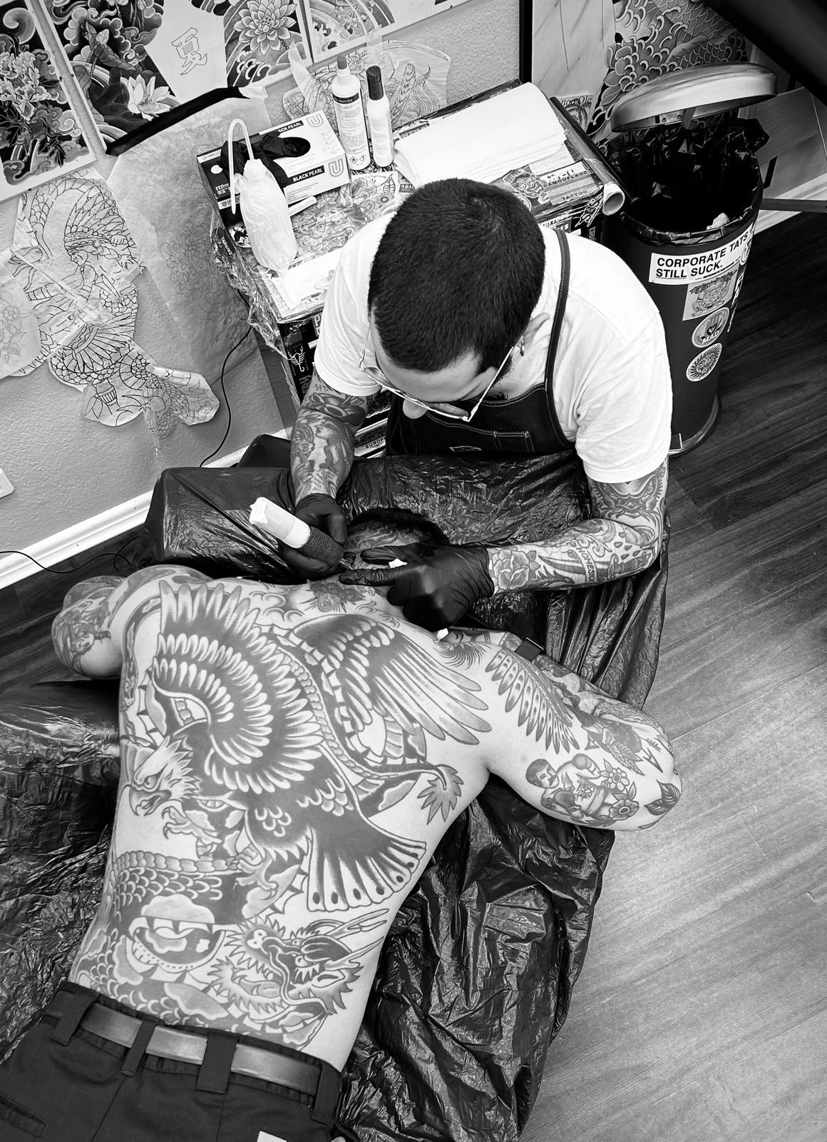 Especializado en tatuaje tradicional americano y japonés, Marcos combina la técnica precisa con el respeto por la historia y el simbolismo de cada estilo. Su trabajo se caracteriza por líneas sólidas, color potente y composiciones equilibradas que mantienen viva la esencia del tatuaje clásico, adaptándola a cada cliente y creando piezas únicas con identidad propia.